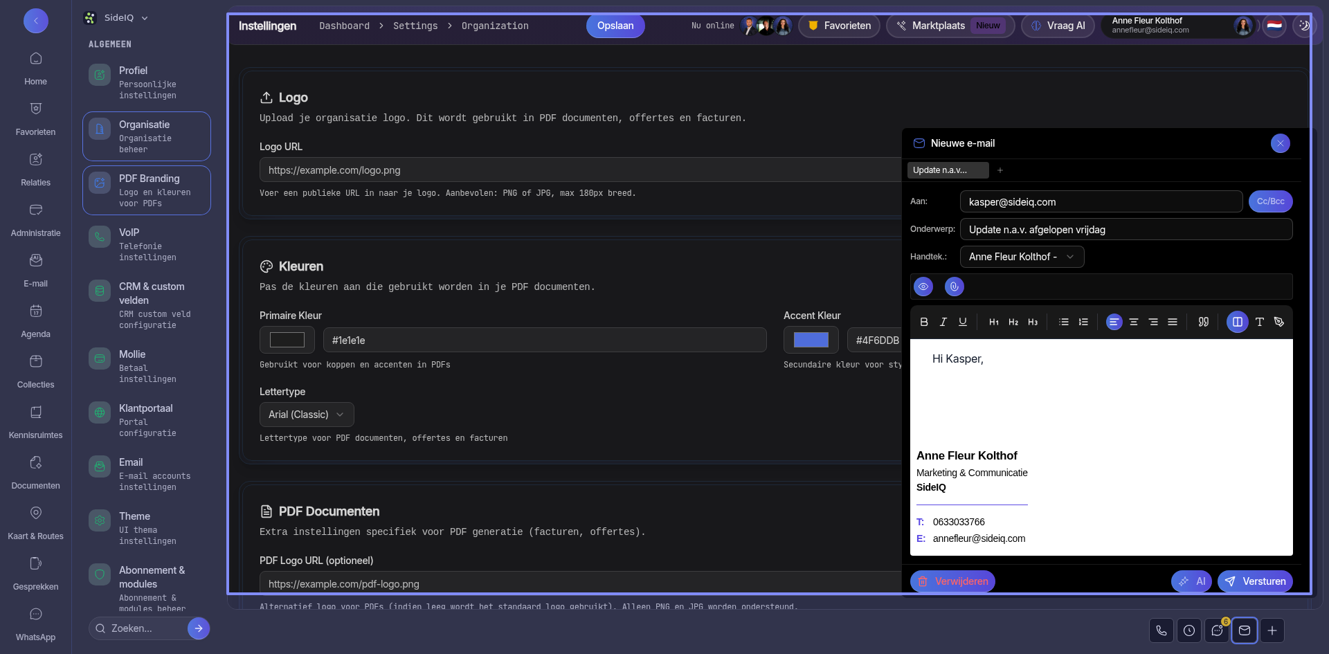 Font (body text) komt niet overeen met handtekening (fonttype), ondanks het instellen van 'arial bij branding'